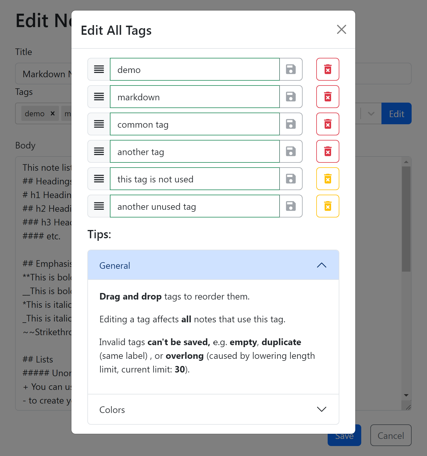 This is a Markdown note taking app that also allows users to search and manage different notes with their tags and much more, you can check out the live demo here (mobile/touch friendly), or its repository here.